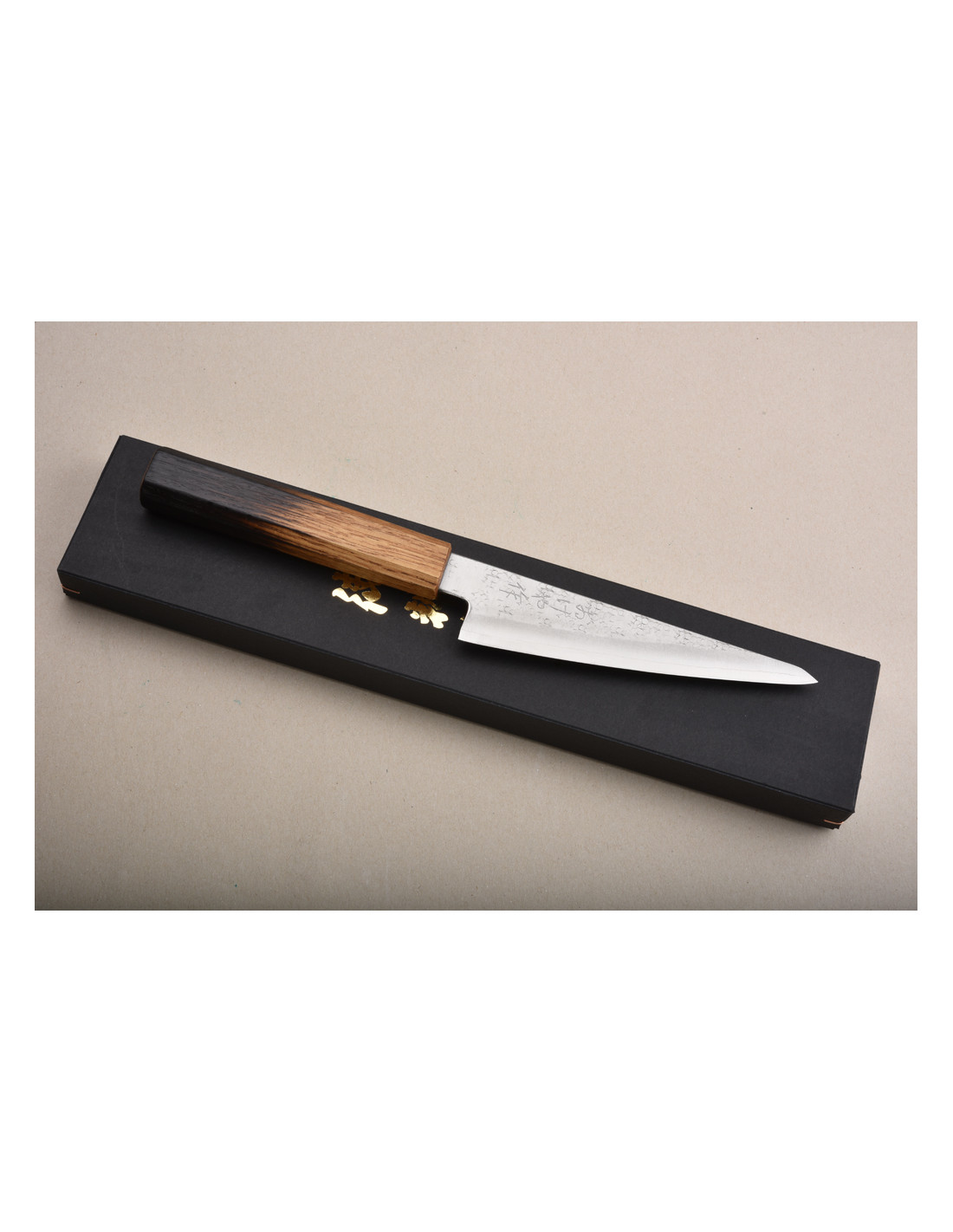 Akihito Fujiwara est un jeune coutelier-forgeron travaillant avec son père Yasuhiko, dans l'atelier familial situé à Miki, historique cité coutelière au nord de Kobe (province de Hyogo). Il représente la quatrième génération d'artisans et il est déjà promis à un avenir radieux. Les pièces sortant de l’atelier Okeya sont totalement réalisées en interne, lames et manches, ce qui est assez rare pour être noté.