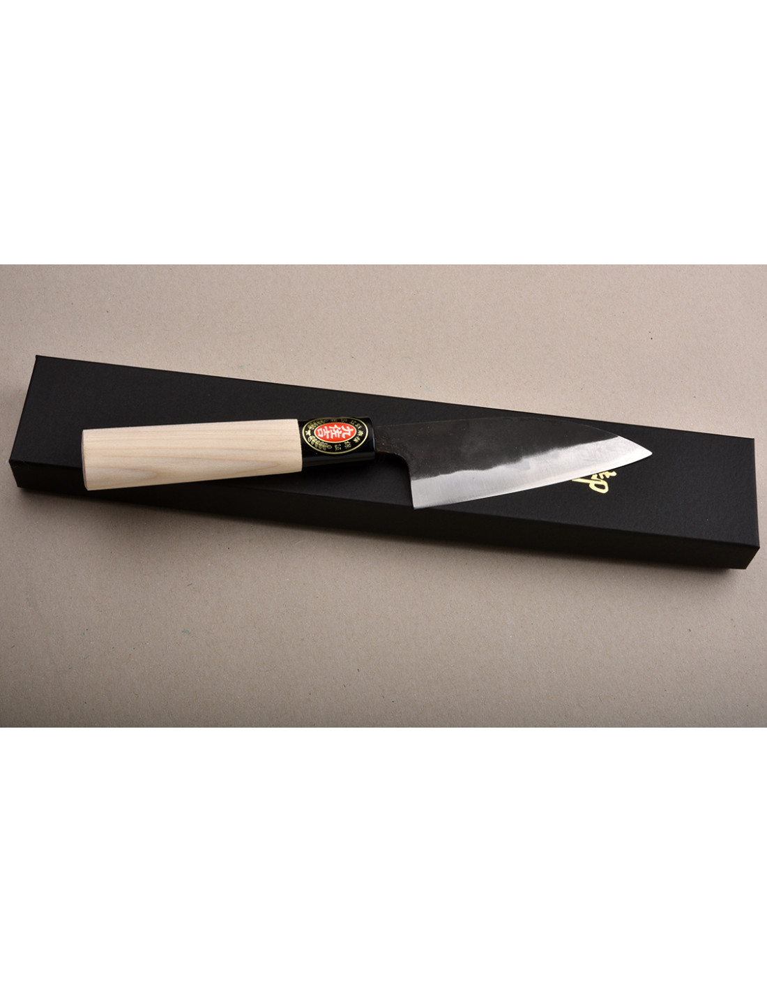 Couteaux à lame forgée, montée sur manche en magnolia , avec virole en résine. Réalisés au Japon par Yoshida Hamono.