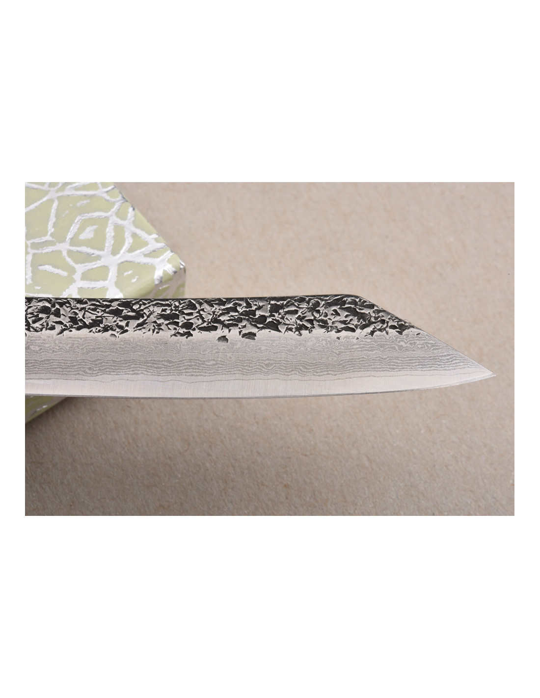 Lame damas suminagashi 16 couches/VG10 de 75 mm. Dos de la lame martelé (tsuchime).