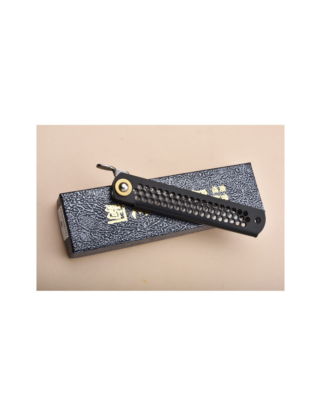 D’abord plié longitudinalement, le petit fermant était assez fragile avec son manche en tôle, puis en laiton. L’idée vint à Shigeji Nagao de le rendre plus rigide en pliant le manche dans la largeur de la tôle. Puis la lame évolua, de la forme en feuille de bambou à celle actuelle.